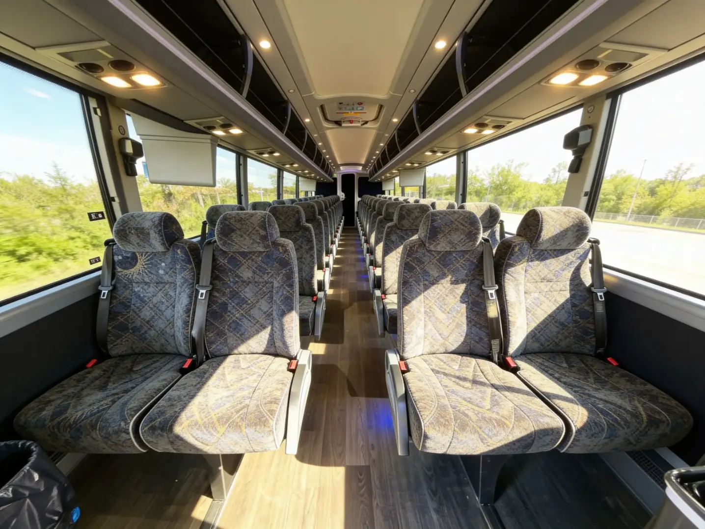 When you book with Olive Branch Charter Bus Company, you'll get the best amenities in the industry-perfectly matched to your group's size, comfort level, and budget. We offer everything from all-in-one sprinter vans with USB ports and overhead storage to full-size charter buses with reclining seats, on-board restrooms, and private WiFi networks that keep you connected on the road. You can request luxury options like leather interiors, flat-screen TVs, and custom lighting for special events, or choose practical features such as PA systems, luggage bays, and ADA-accessible lifts for large group travel.